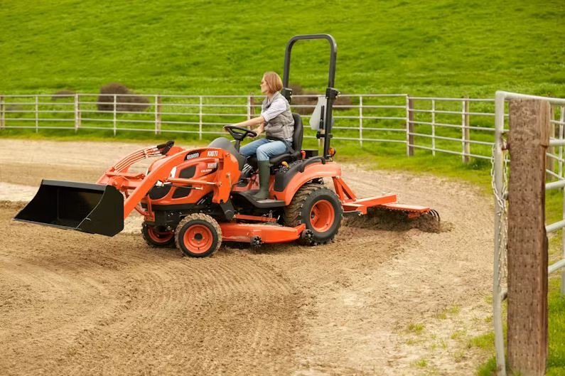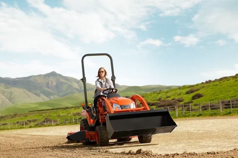 The Kioti CS2210 is a 21 horsepower sub-compact tractor perfect for properties up to 5 acres, featuring a hydrostatic transmission for easy operation and a three-point hitch for versatility with various attachments.