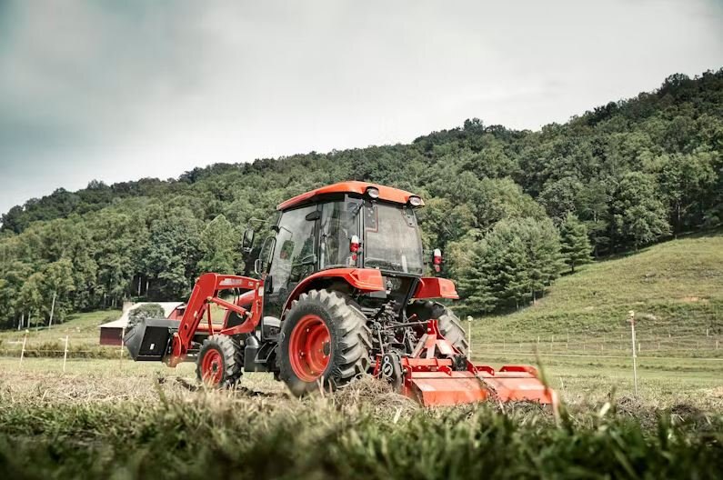 | The KIOTI NX5010CH is a 50-horsepower compact utility tractor with a factory installed cab, hydrostatic transmission, and independent PTO. Its lift capacity of over 3,000 lbs. is capable of handling a wide variety of tasks. |