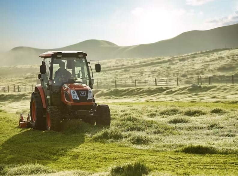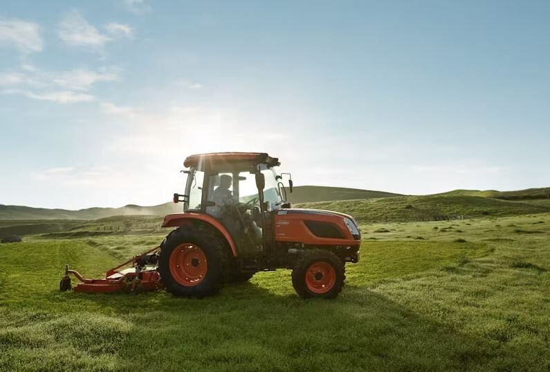 | The KIOTI NX5510C is a powerful compact utility tractor with 55- horsepower, factory installed cab, synchro shuttle transmission, and spacious operator area |
