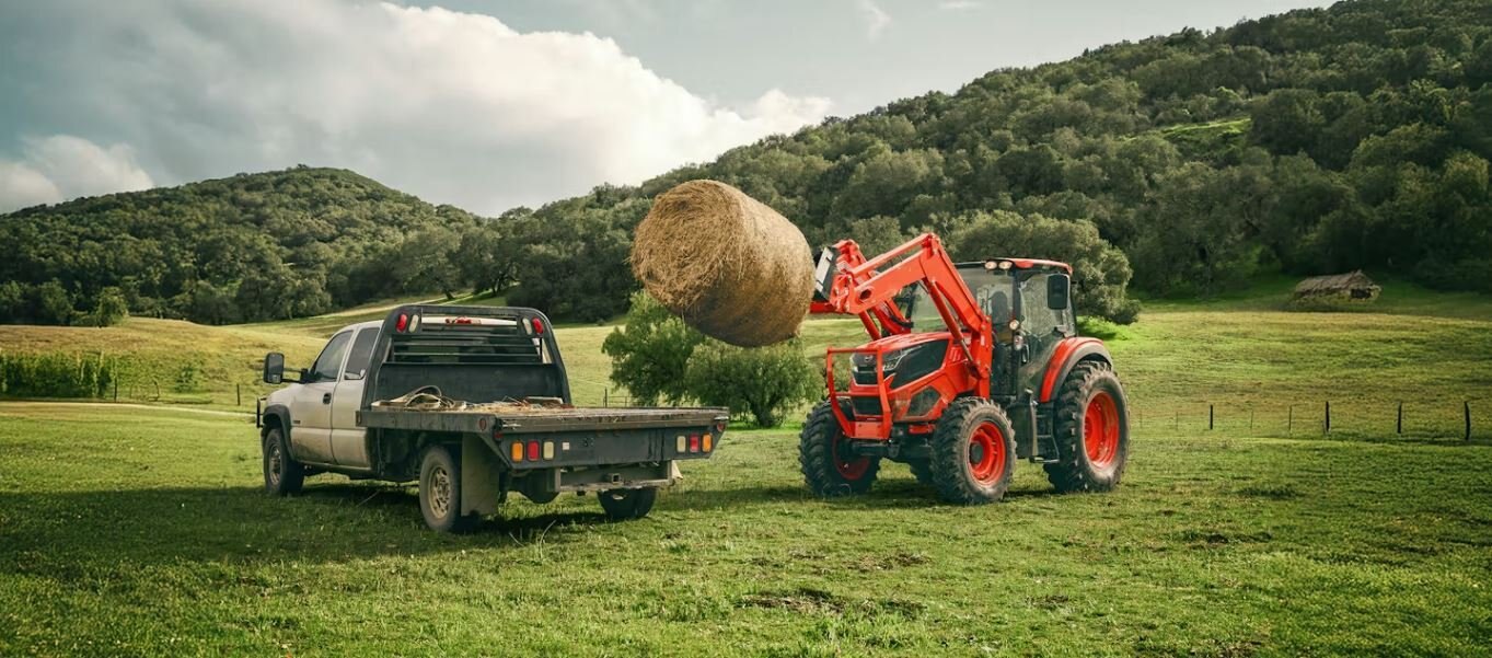 KIOTI’s powerful 98-horsepower utility tractor, which boasts a lift capacity of 9,722 lbs, is a great choice for hauling hay and maintaining livestock. |