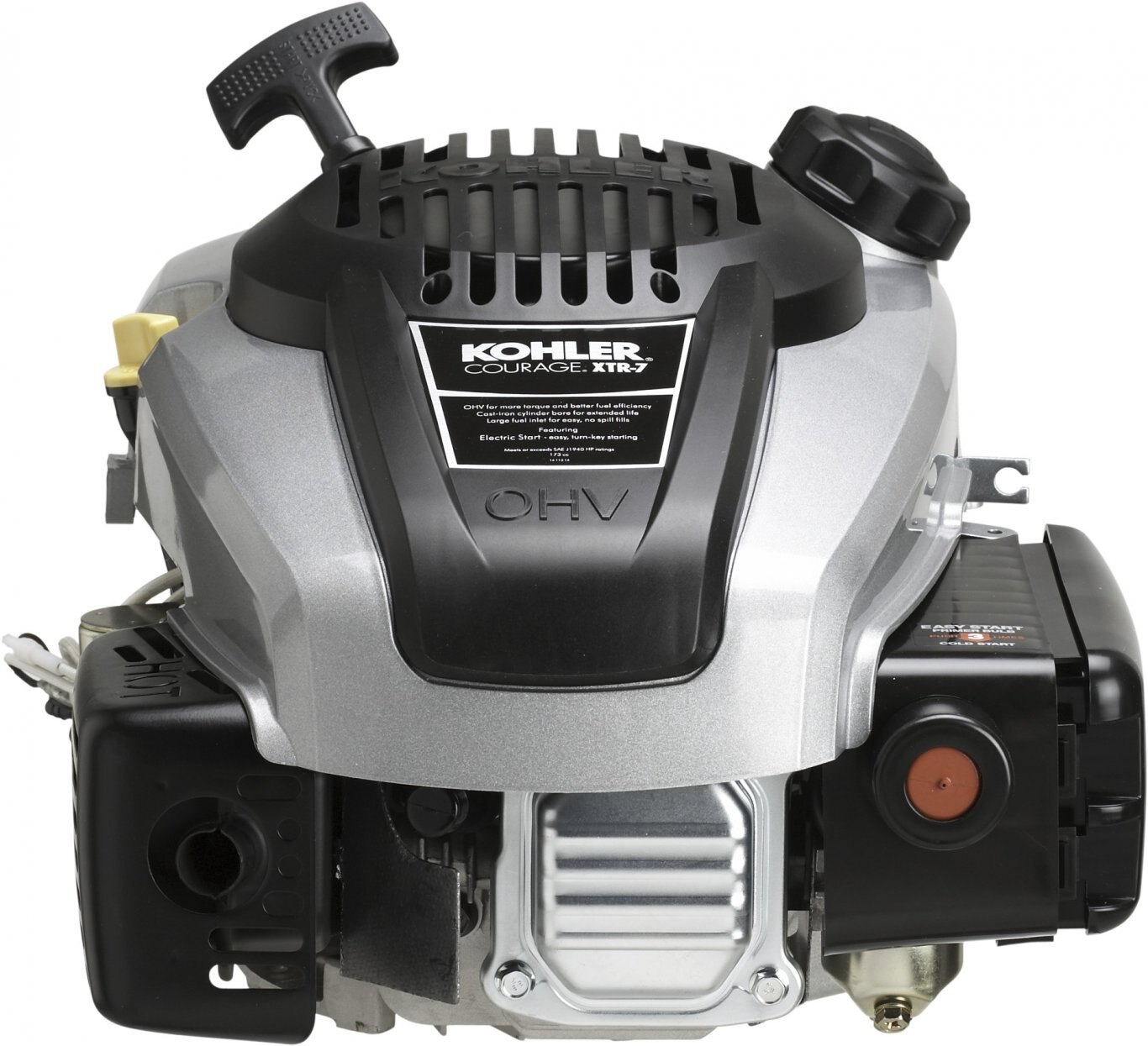 Four-cycle, single-cylinder, air-cooled, vertical shaft, gasoline, OHV, with cast iron liner.