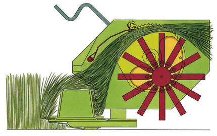 It’s simple: When using the machine for cutting daily rations or legumes, the operator swings the rotor conveniently to the rear and out of work to use the machine as a plain mower. |