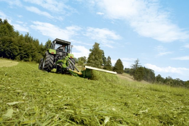 Constant-velocity and high-power driveline: Drive power flows through a frictional driveline of pto shafts and gears, a system that warrants an efficient transfer of power from the tractor down to the cutterbar discs – even in difficult conditions. |