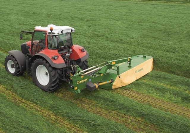 The competitive mower: The KRONE EasyCut R 360 model is a powerful mounted mower that works at a width of 3.60 m (11'10"). A very cost-effective and viable machine, EasyCut R 360 not only cuts your daily rations but also plays a major role in extensification programmes. Depending on the design and the sense of disc rotation, the mower can spread and swath the crop into two equal volume swaths.