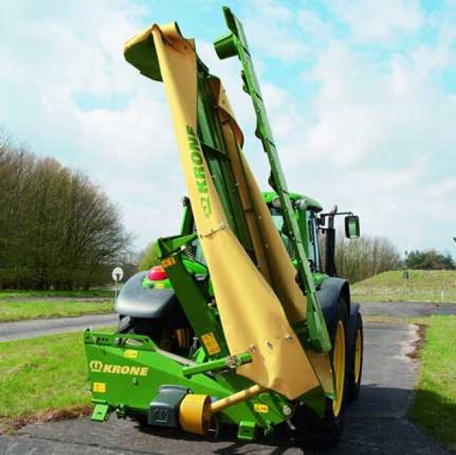 A unique KRONE design: Storing the machine in an upright transport position saves time and space. Optional stands give stability and make tractor attachment/ removal easier and simpler. You can of course store these mowers horizontally as well.