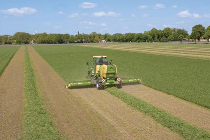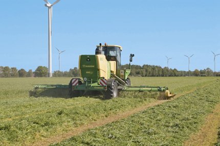 Powerful monster tackles every job: KRONE proudly presents BiG M 420 – a versatile specialist that takes care of all your mowing applications. BiG M 420 is the machine that gears you up for every task. Just look at its high-output CV conditioner or CRi roller conditioner or take the spreading or swath merging options. Cutting at an enormous work width of up to 9.7 metres (31'10") and offering tremendous power reserves while distributing the weight uniformly, BiG M 420 produces clean and high-quality forage without affecting the re-growth of crops – in any condition and any field around the world. One does it all: BiG M 420 delivers total efficiency – even in small fields. The machine scores perfect on handling and fast travelling between fields. Opening up small and awkward fields is as easy as it can get – thanks to the machine‘s great maneuverability and the option of using the mowers separately. This machine is up and working while others are still preparing for work. |