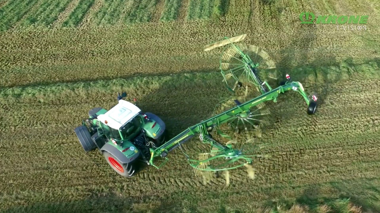 Raking nearly 20 metres (65'7") into one double windrow, the KRONE Swadro TS 970 is the ideal match for a high-capacity precision-chop forage harvester. Offering stunning work rates of up to 10 ha/h, this machine is the performance booster of your harvest chain. Running on a wide wheel base and steered via an articulated steering system, this high-capacity rake offers an enormous agility and very easy manoeuvring.