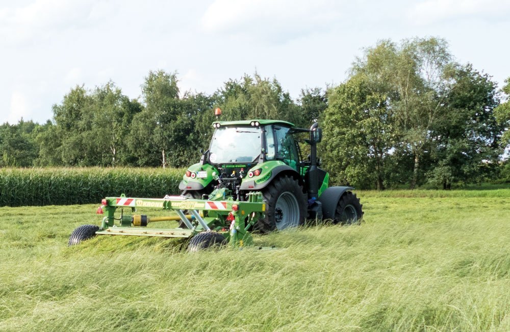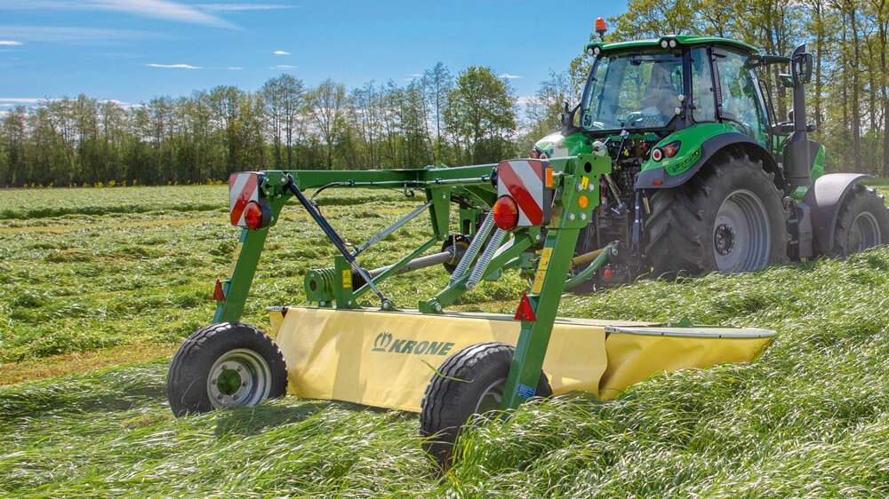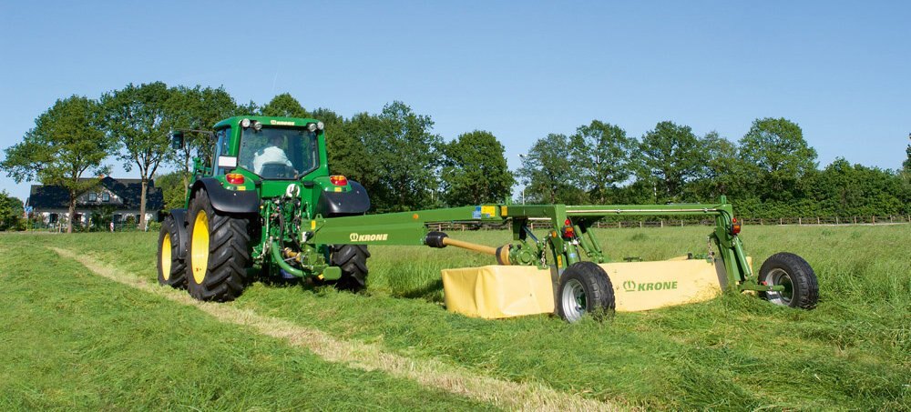 | At the heart of high-quality forage is a perfect and clean cut, which in turn is down to the specifi c design of the mower and its suspension and control system. The KRONE DuoGrip system not only suspends the mower in its centre of gravity but also provides lateral guidance, allowing the cutterbar to follow the ground contours even more accurately for more protection to the sward and high-quality forage even in diffi cult conditions. |