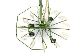 Raking nearly 20 metres (65'7") into one double windrow, the KRONE Swadro TS 970 is the ideal match for a high-capacity precision-chop forage harvester. Offering stunning work rates of up to 10 ha/h, this machine is the performance booster of your harvest chain. Running on a wide wheel base and steered via an articulated steering system, this high-capacity rake offers an enormous agility and very easy manoeuvring. |
