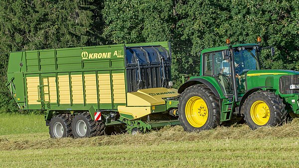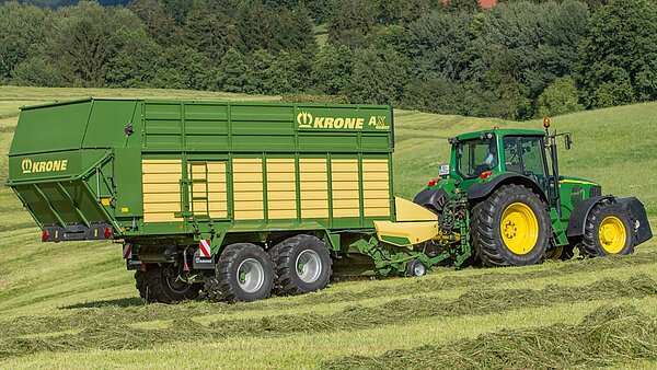 AX defines the KRONE range of forage wagons that offer capacities from 25 m³ to 31 m³ and which are available with different extensions that give users the flexibility to use them as self-loading forage wagons with and without discharge rollers but also as silage trailers in the maize harvest chain. AX suggests maximum reliability, efficiency and flexibility. |
