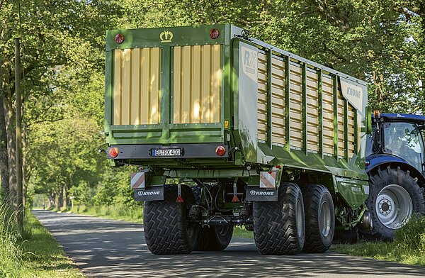 KRONE RX – the efficient loading and forage transport wagon a transport volume of 33 to 40 m³. The dual-purpose loading and forage transport wagon truly fulfills the requirements of both its purposes: as a loading and forage transport wagon in the grass harvest chain and as a forager-filled silage trailer in the maize transport chain. With the high-performance 'OptiGrass 28 and 37' cutting systems, it offers a clean, precise cut as well as structured and homogeneous forage conditioning across the entire width. Thanks to its versatility, operational reliability and high efficiency, the use of an RX wagon is particularly economical. |