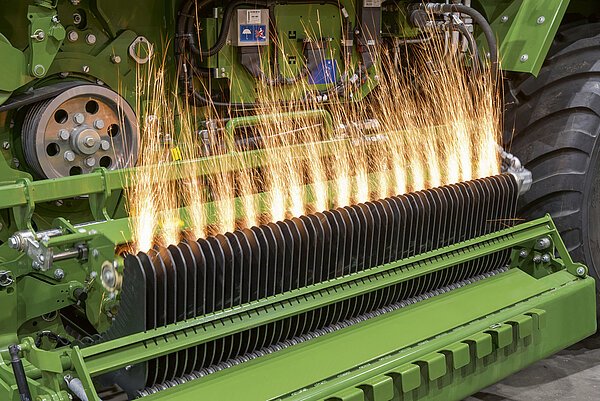 Sharp blades are fundamental for clean and smooth cuts. This is why KRONE developed SpeedSharp, the unique blade grinding device. The trademark of this system is its simplicity. |