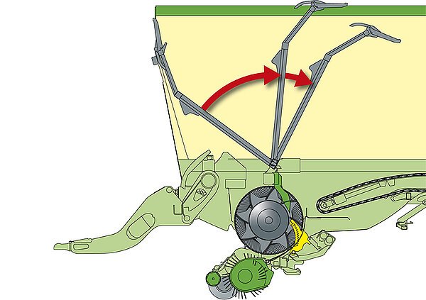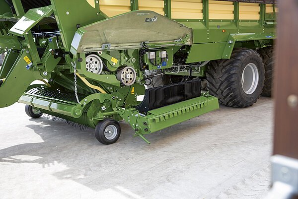 Loading and unloading rates are important parameters in viable farming and contracting. The pivoting headboard boosts the machine’s loading capacity by up to 4.5 m³, compresses the material to needs and helps empty the machine faster and effectively. |