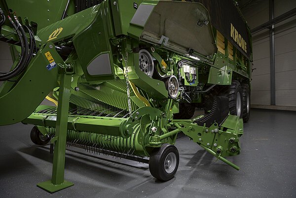 The EasyFlow pick-up with hydraulic drive is the ideal solution for demanding requirements. With its 6.5 mm thick double tines in a helical layout, it meets the most demanding requirements in ease of maintenance and pick-up capacity. The hydraulic drive integrated in this pick-up offers an even larger work width, which helps to collect even more material at an optimum driving speed and maximizes the intake capacity. |