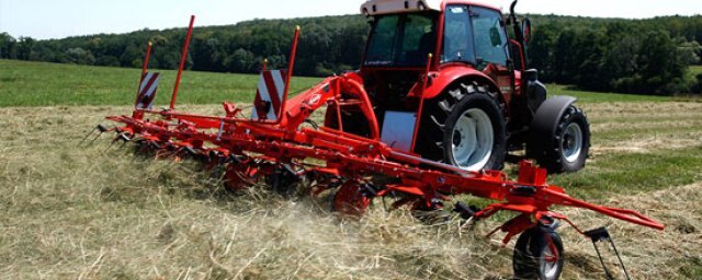The Kuhn GF 7902 rotary tedder is designed to meet the needs of hay producers who demand the highest quality tedding of forage to ensure even and quick drydown. This tedder is designed to excel at spreading short, thick crops.