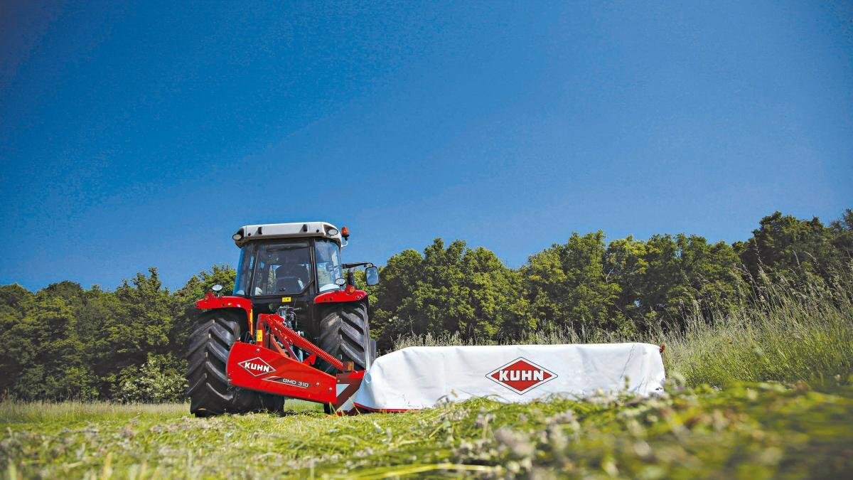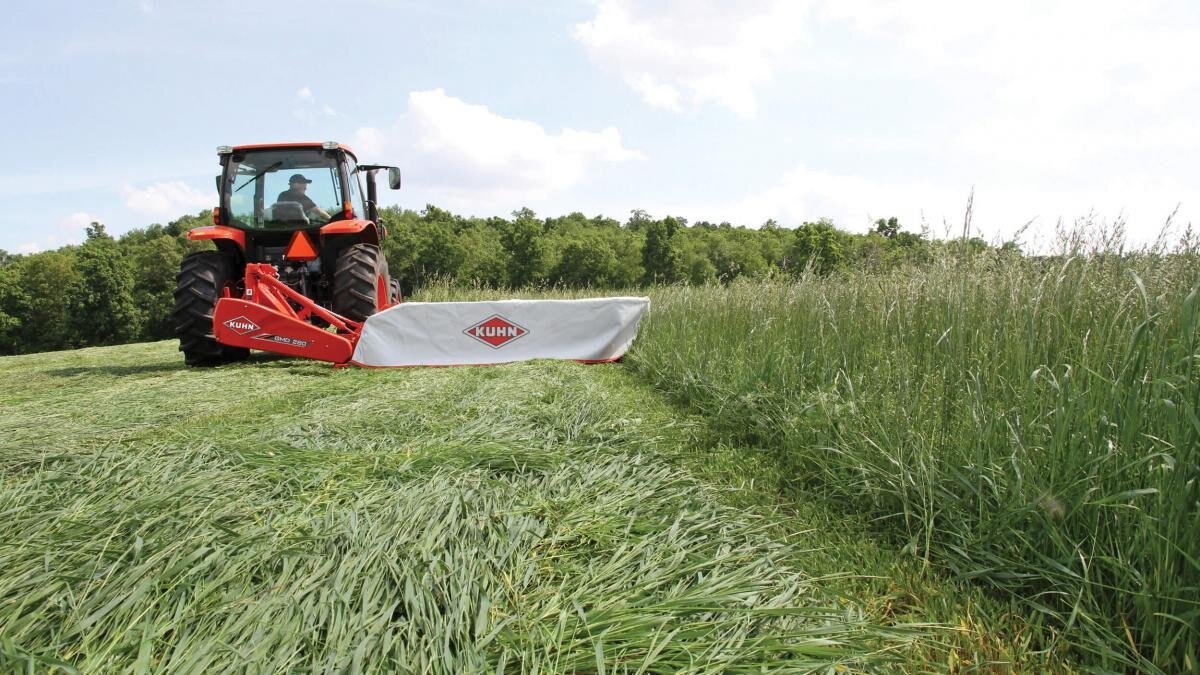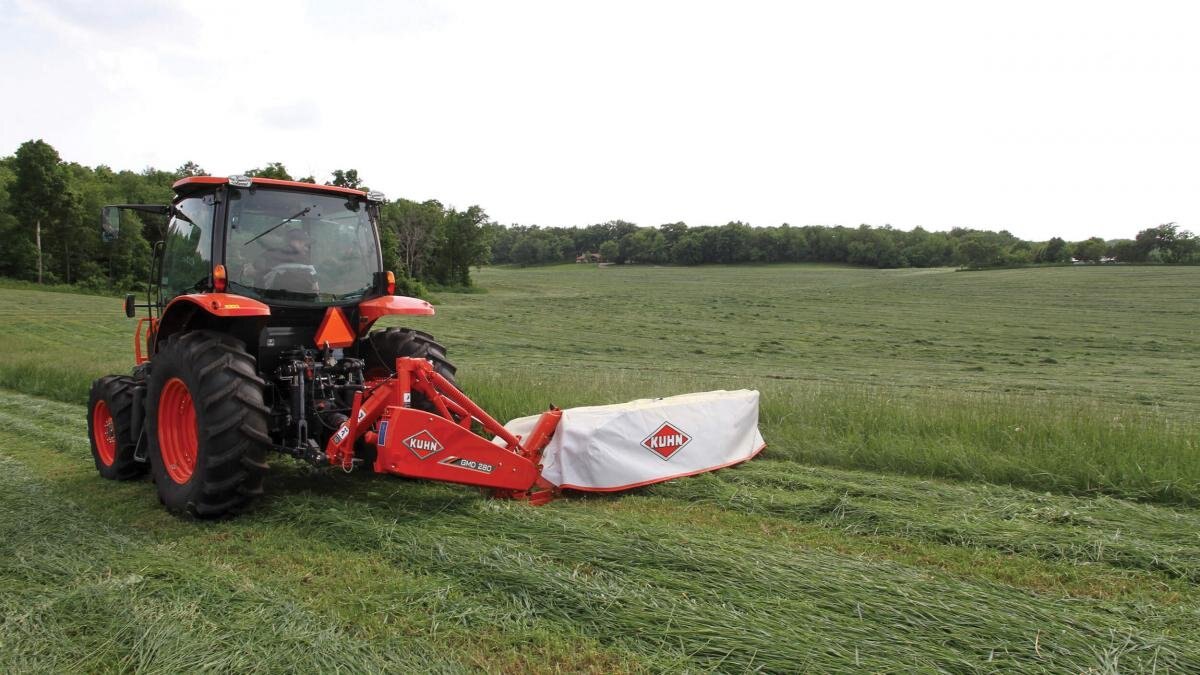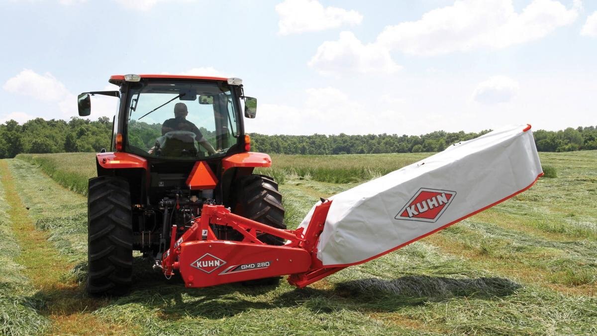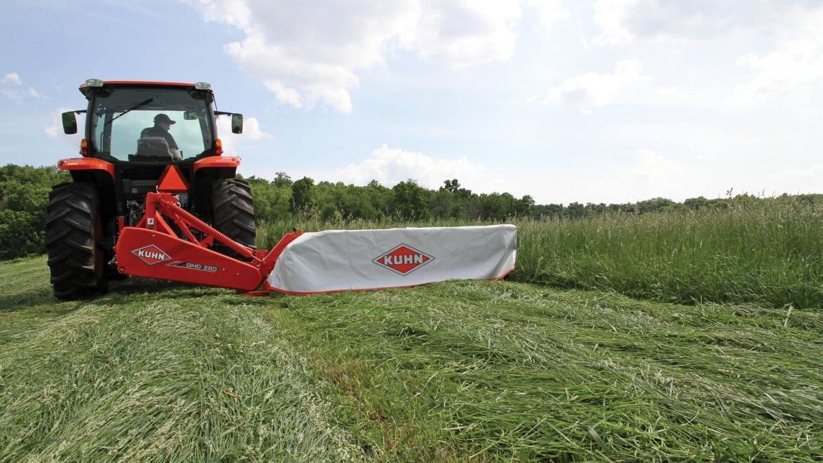 KUHN GMD Premium Series mounted disc mowers, with working widths from 7’10” to 10’2”, offer increased durability, more features and simpler operation. |