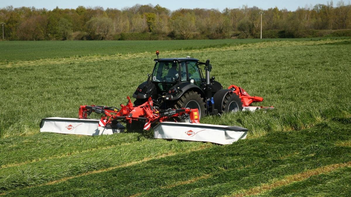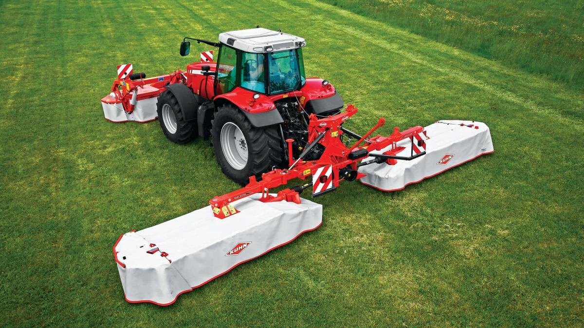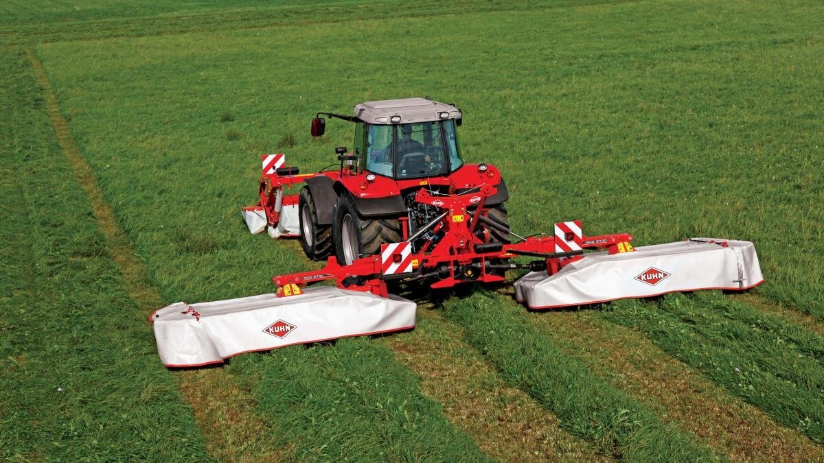 KUHN GMD 30 Series rear mounted mowers deliver a clean cut with a wide cutting width and are ideal for large-acreage producers. These mowers provide high reliability and quick cutting to help produce quality forage at a high output. The high-lift discs and Lift-Control® hydropneumatic suspension ensure excellent cut quality and crop throughput, even in the toughest conditions. Fast-Fit® knives and the Optidisc® Elite lubed-for-life cutterbar take the time and headache out of regular maintenance. Should the mower strike an obstacle while working, the continuous hydraulic safety automatically pivots up and back, minimizing the risk of damage. At the end of the season, store your KUHN GMD mower without any problems thanks to the vertical storage position of the machine. For the ultimate triple-mower combination, pair one of these models with a KUHN GMD 25 F Series front mount mower, and take productivity to a whole new level. The total combined working width of up to 32’6” knocks down large fields in no time, while exclusive features provide strong returns on investment by reducing maintenance and downtime. |