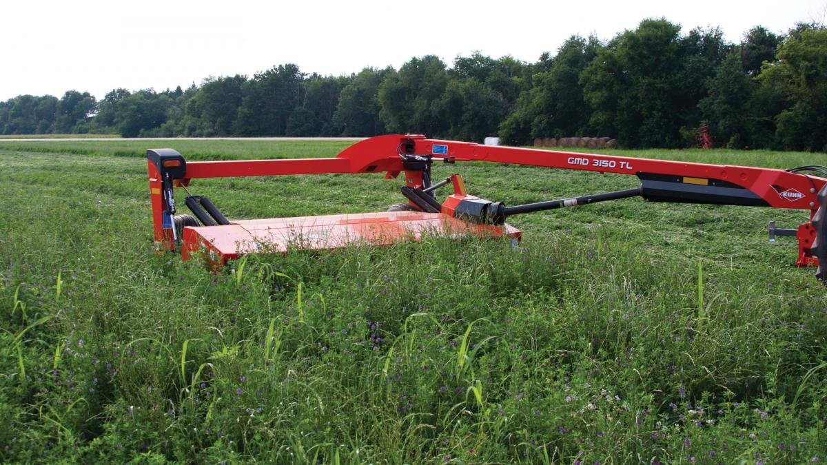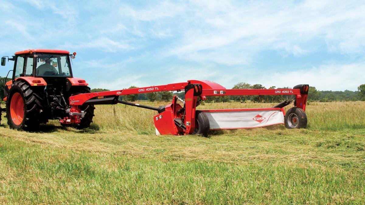KUHN GMD 50 TL Series trailed disc mowers cut more acres per hour and offer simple adjustments, low maintenance, and dependable grass cutting. These trailed mowers provide easier tractor attachment, as well as cutterbar flotation and contour following, compared to fully-mounted models.