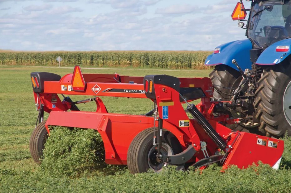 KUHN FC 61 TL Series mower conditioners offer fast, clean mowing of heavy grasses and delicate forage crops alike, combined with quick drydown from effective conditioning. With a broad range of windrow width settings, along with finger, rubber roller and steel roller conditioning options, KUHN mower conditioners offer unmatched adaptability to different harvest practices and field conditions.