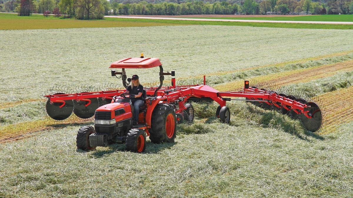Available in 10-, 12- and 14-wheel configurations, the SR 300 Series SpeedRake® wheel rakes feature working widths ranging from 20’10” to 28’.