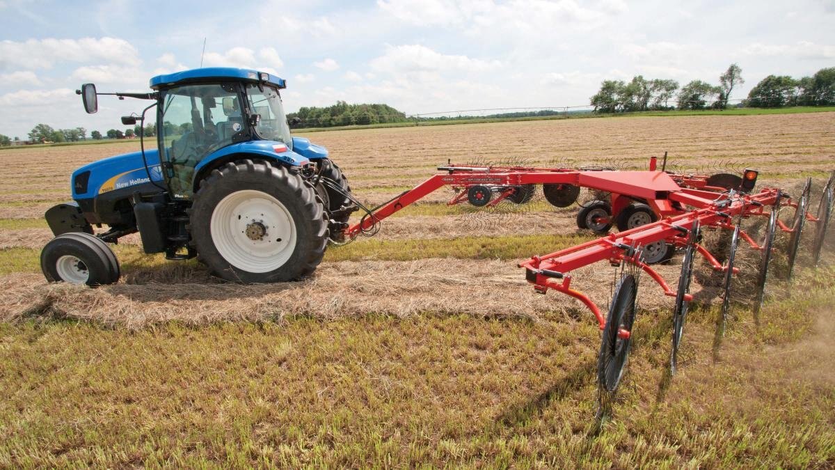 Heavy-duty, square-tube rake beams provide a solid structure and outstanding durability, even when raking the widest windrows. The cantilever design provides a solid support for the rake wheels and allows them to closely follow the ground. Rake closer to fences, irrigation borders and other obstacles, without the need for caster wheels.