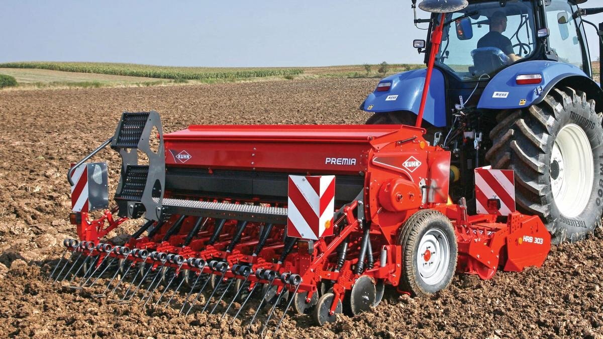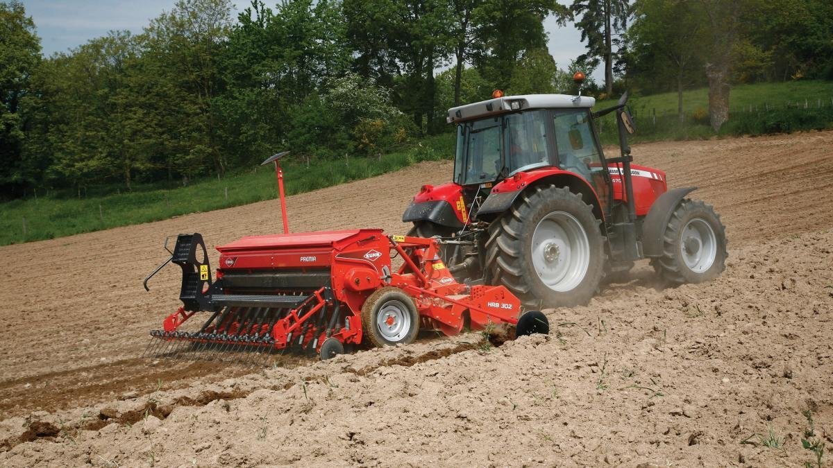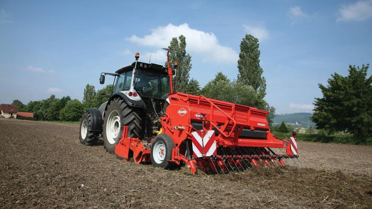 KUHN Premia mounted seed drills provide high-quality results with seeding units for mixed soil types and a covering harrow designed to work under variable conditions.