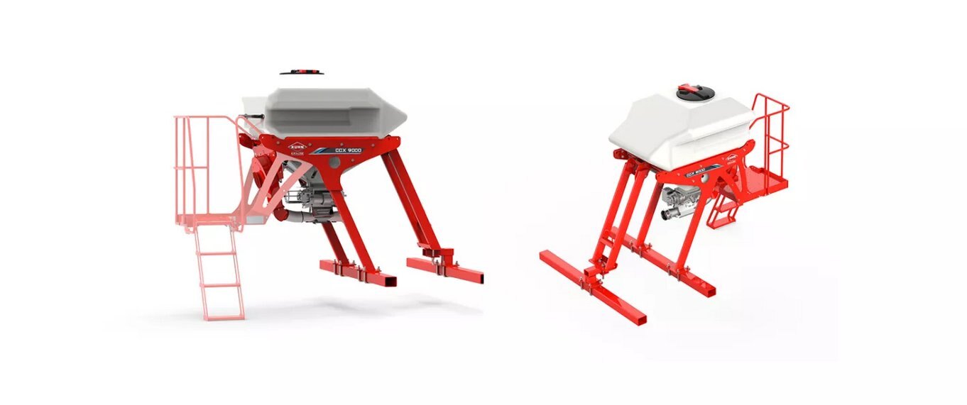 KUHN Krause offers three CCX 9000 models with a basic mounting frame, allowing customers to mount the cover crop seeder to machines of their choosing. The CCX 9000ACC is equipped with the Quantron S-2 control system and diffusers. |