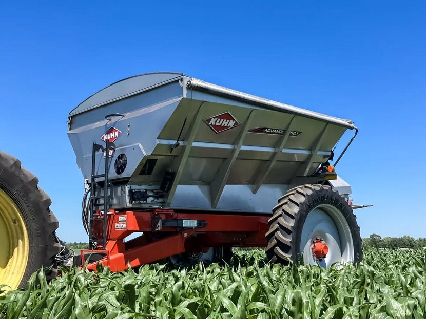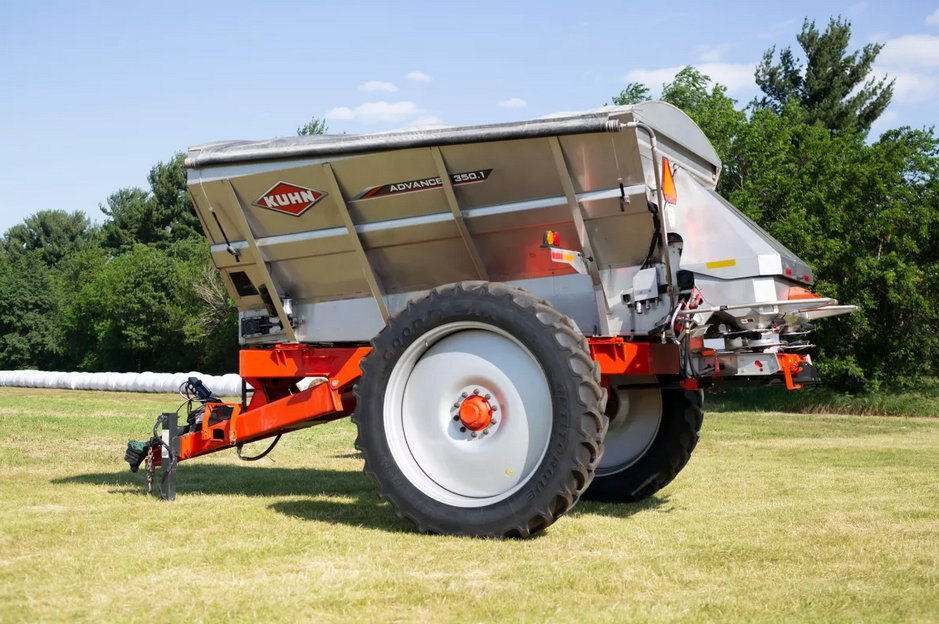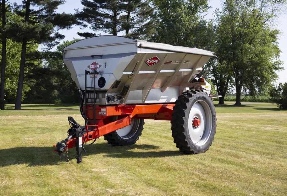 The KUHN Advance™.1 Series trailed fertilizer spreaders offer fertilizer cost savings and environmental benefits through industry-leading control of application rate and spread pattern. With adjustable axle spacing, high ground clearance and multiple tire options, the Advance is capable of in-season fertilizer application as well as pre- or post-season spreading. The optional Universal PowerPack allows high-volume spreading of lime, increasing the machine’s versatility. Two models offer capacities of 300 and 350 cubic feet and working widths of up to 164’. |