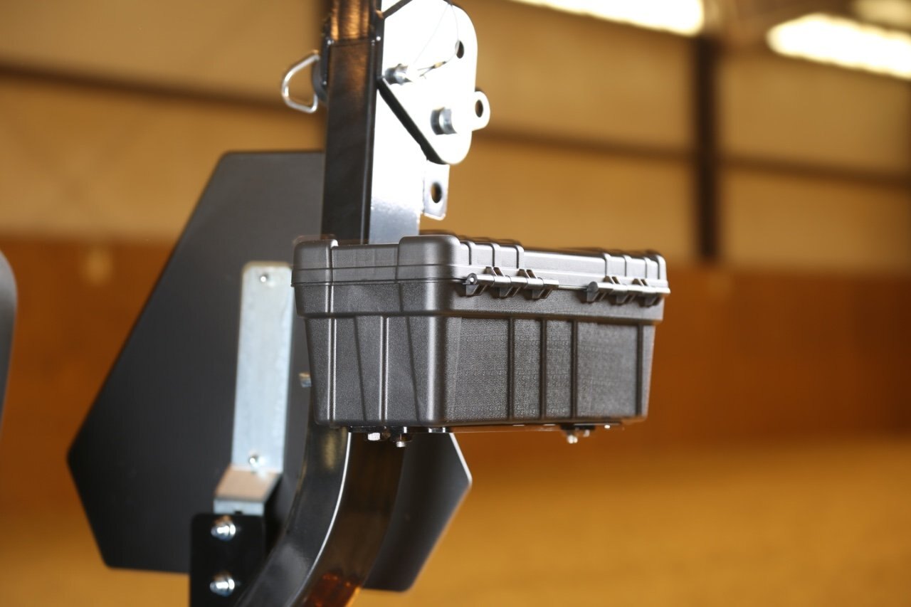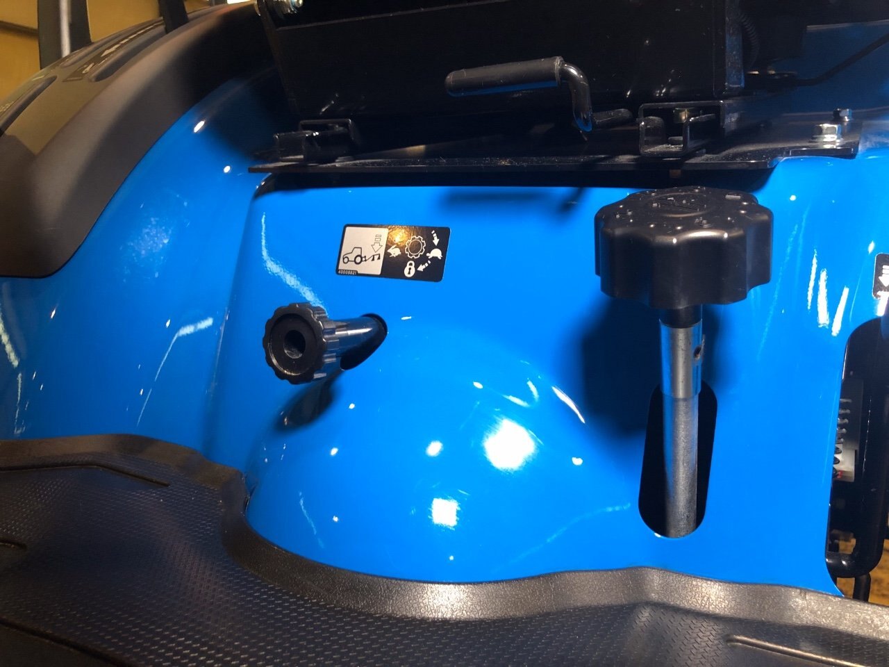 Adjusting the cutting height for the available 60" mid-mount mower is as easy as turning a dial.
