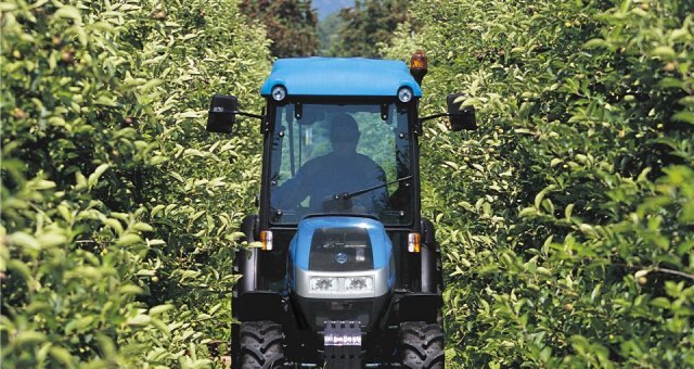 To complete the Rex range of specialty tractors, Landini offers the new S model narrow orchard tractor and V model vineyard tractor.  Each model boasts 83 engine horsepower, and both are available in either a cab or open station configuration. The key features of the V / S Series tractors include: a Tier 3 Perkins 1104D turbocharged diesel engine for powerful, quiet, and environmentally friendly performance, a modular transmission with reverse shuttle, special 4wd front axle with 55° steering angle, “IBS” integral braking system allowing a maximum speed of 25 mph (40 kph), and versatile hydraulics with new electronic 3-point lift. The pressurized, air conditioned cab with ergonomically arranged controls provides the operator with maximum comfort and safety when treating crops with pesticides. The rounded profile of the hood and the folding ROPS in the platform model allow greater maneuverability in confined areas for enhanced productivity.