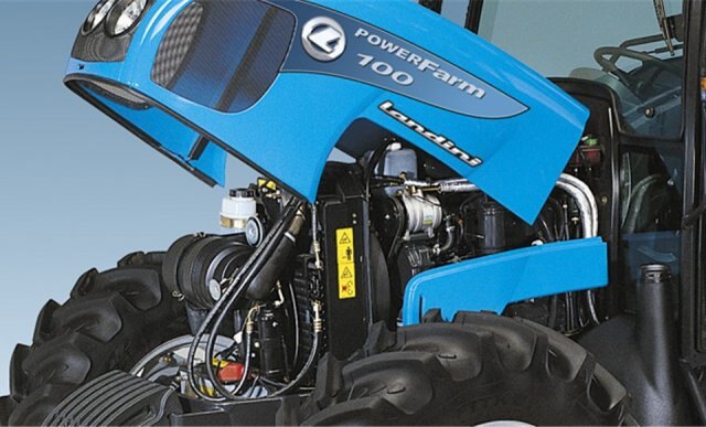 The Powerfarm tractors are powered by a new range of advanced, environment friendly engines that provide low emission levels in accordance with the Tier 3 standards. Specially designed for farming applications, the new Perkins 1104d are modern engines that provide state-of-theart technology and solutions. The range comprises four models delivering the following power ratings: 83 hp (turbo), 92.5 and 102 hp (turbo aftercooled). These engines feature an advanced fuel injection system that optimises air-fuel mixture , thereby improving combustion and engine efficiency. Higher horsepower and torque with lower operating costs are thus achieved. The forward tilting hood provides easy access to the engine compartment for routine service and maintenance. |