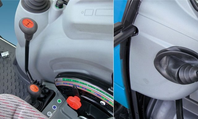 The modular standard transmission (speed four) provides 3 ranges and 4 speeds in each range, resulting in a total of 12 forward and 12 reverse speeds with mechanical synchro shuttle. The standard gearbox can be combined with either an underdrive (only for 2wd versions) or a creep option to provide 24 forward and 12 reverse gears with a maximum speed of 30 km/h. An overdrive option is also available for 4wd models to provide 24/12 gears with 40 km/h maximum speed. The synchro shuttle lever is conveniently located to the driver’s left to enable easy direction changes. The same lever can be used to alternately engage the underdrive, creep or overdrive option.