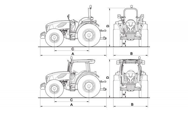 The ‘Total View’ cab has received a refreshed interior giving the driver a brighter and more comfortable working environment, while still retaining the look and feel of the previous versions. The fully adjustable driving position can be optionally equipped with an air suspension seat and the new instrument panel tilts with the steering column, allowing the driver to constantly monitor the tractor operation. The interior features a sleek and modern design with automotive-grade fit and finish and ergonomically-arranged controls. The roof-mounted heating and ventilation system (air-conditioning as option) offers the operator a safe, healthy and comfortable work environment. A transparent roof hatch provides extra visibility for loader operations and four powerful lights make night work easy. Natural ventilation is ensured by the opening front and rear windscreens. The version with iso-mounted platform is equally comfortable and ergonomically-designed as the cab version. The two-post ROPS can be optionally equipped with a sun canopy. |