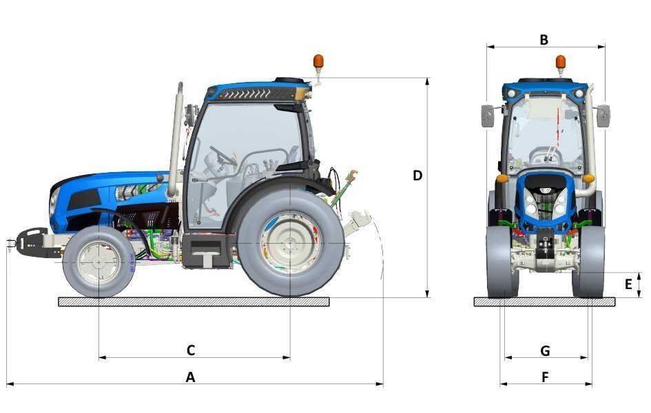 V model for vineyards: specially designed to operate between vineyard rows. Vineyard versions can be specified with a high-pivot rigid-mounted front axle with increased swing to better negotiate uneven terrain. This axle is available in two versions: standard and narrow. The narrow version has a minimum overall width of 1000 mm. |