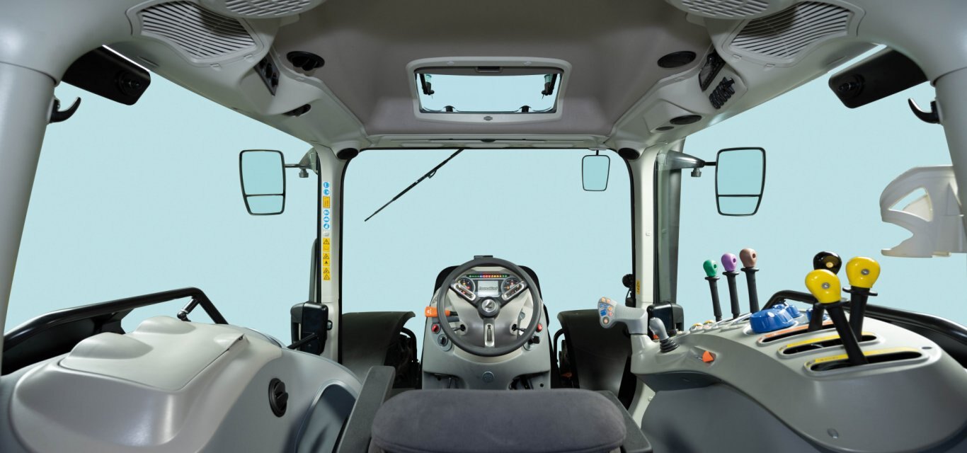 Attention to operator comfort is confirmed as best in class for both field and road driving, thanks to the optional independent front axle suspension system. There are also two cab suspension options: mechanical or semi-active electronically controlled. |