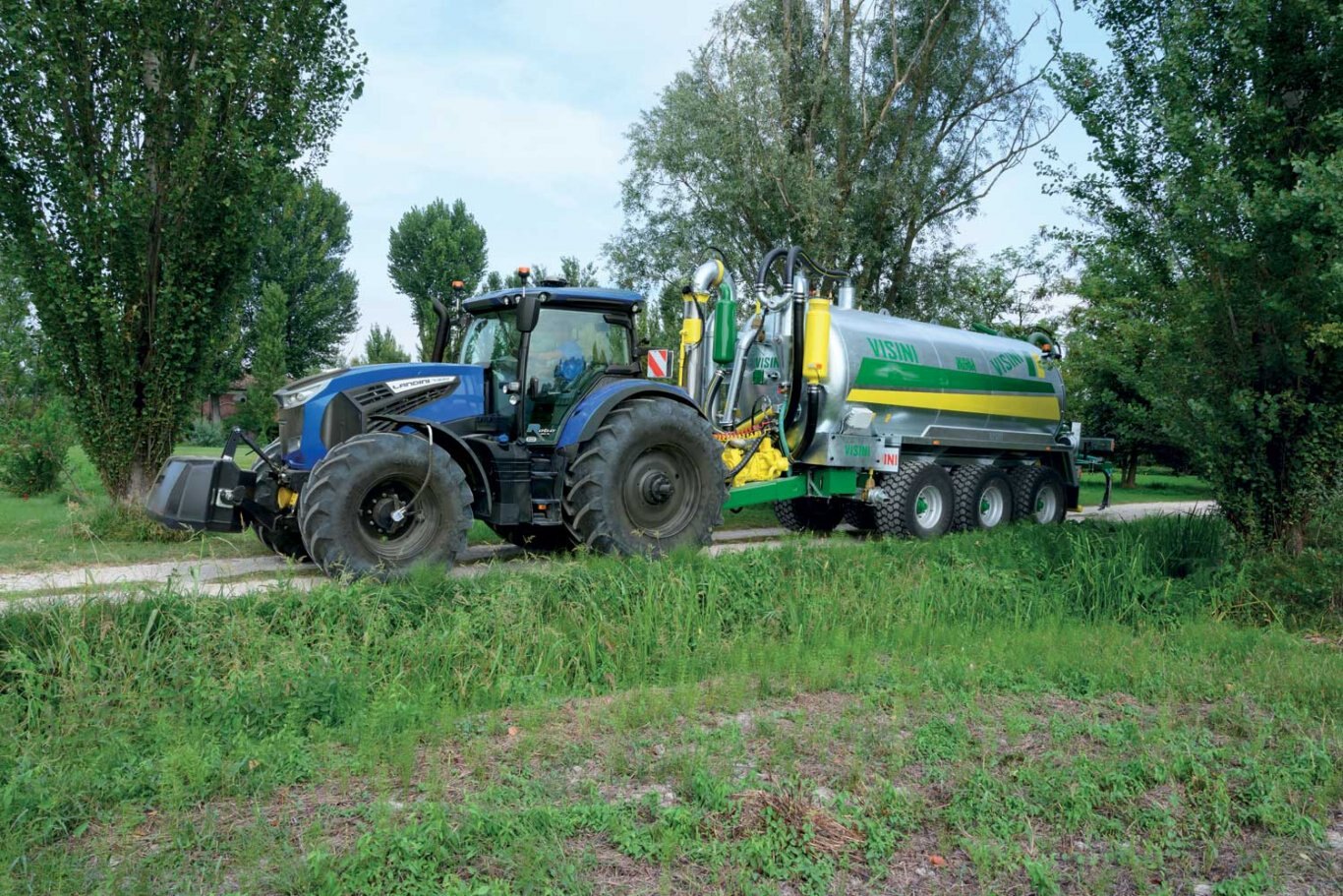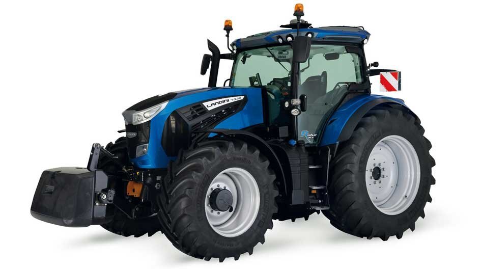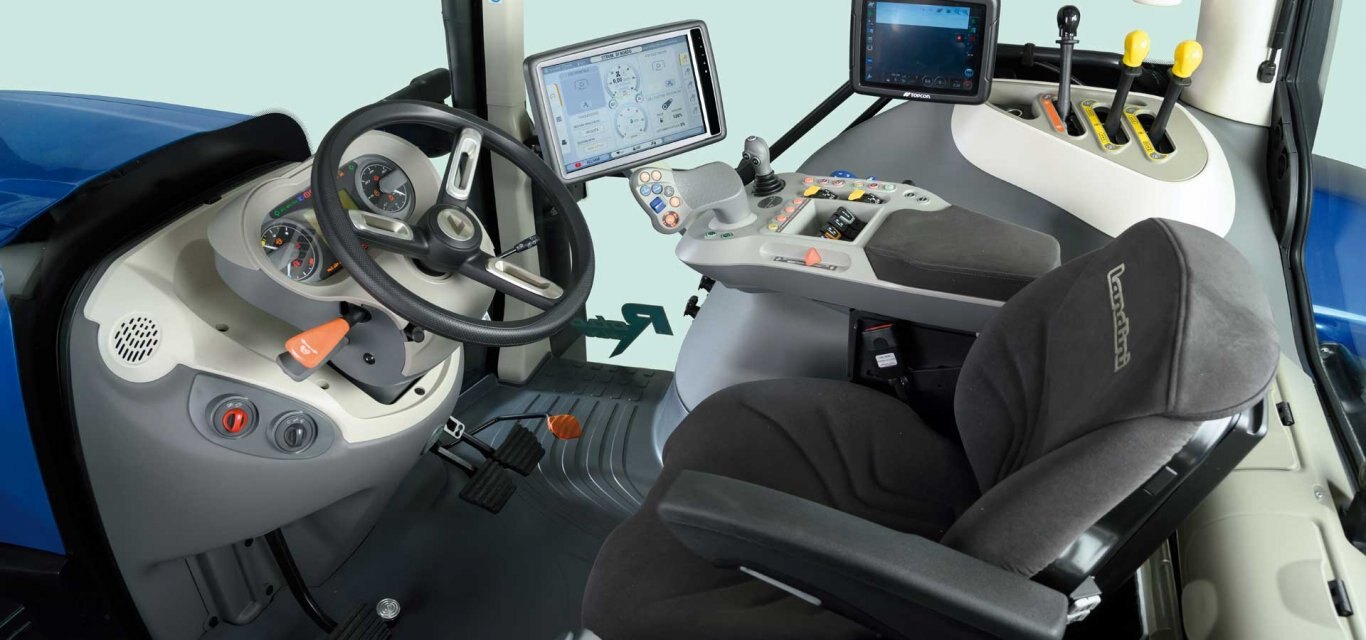 The Landini Serie 7 Stage V features the newly-designed Lounge Cab, an innovative four-post cab with rear-hinged doors that provides exceptional all-round visibility. The new cab offers a highlyefficient sound insulation system which maintains an in-cab noise level of only 70 dB for maximum comfort of operation. An electrohydraulic semi-active suspension system is optionally available to further enhance ride comfort. Wide and well-spaced access steps allow the operator to easily get in and out of the cab, while the buddy seat neatly folds away making for easier and safer access. The cab interior features an automotive-style fit and finish with easy-clean soft-touch materials. The instrument panel and the steering wheel can be electrically adjusted in tilt and depth to suit the driver’s needs. The Alcantara upholstered swivel seat with dynamic air suspension system and fully automatic height adjustment features backrest heating and ventilation for ultimate driving comfort. The multifunction righthand armrest accommodates the main tractor controls arranged in a simple and logical manner. In addition, an ergonomically-designed multifunction controller provides easy and intuitive control of key tractor functions. Integrated into the armrest is a 12-inch touch screen monitor with simple tablet-like graphics that allows the operator to quickly manage and adjust the tractor operating parameters. The Lounge Cab’s standard equipment includes a refrigerated in-cab storage compartment, a bottle holder, 12V sockets for charging mobile devices, an internal mirror and an opening transparent roof hatch providing extra visibility for loader operations. Integrated into the cab roof, a highly-efficient automatic climate control system maintains the desired cab temperature whatever the outdoor weather conditions. |