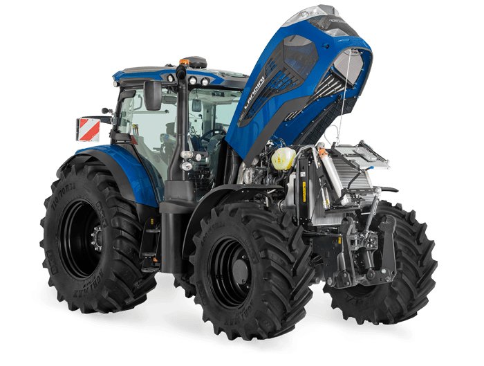 The new Serie 7 Stage V tractors are designed to satisfy the most exacting needs of modern farms and agricultural contractors. Inspired by the automotive design, the new tractor range has been restyled with a more dynamic look and high-quality fit and finish and offers a spacious cab with ergonomically-arranged, intuitive controls for maximum comfort and ease of operation. The cab roof has been fully redesigned and the 12 work lights have been repositioned to provide full all-round visibility for night-time operation. The hood has also been reshaped to enhance visibility to the front.