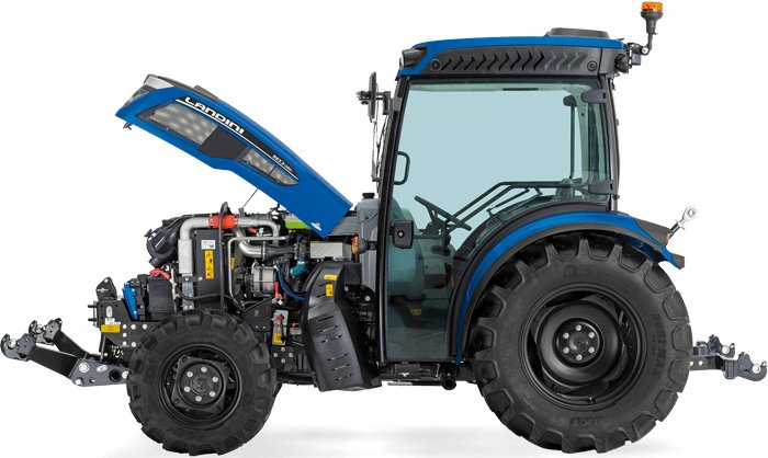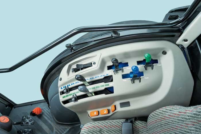 Hydraulic circuit Designed for professional use, the hydraulic equipment delivers 30 litres/min for steering and 50 litres/min for spool valves, up to 3 with the possibility to bring one outlet also at the front, in addition to supporting the rear hydraulic hitch featuring mechanical control and ELS (Ergonomic Lift System), with anti-dumping system and a capacity as high as 2,700 kg. |