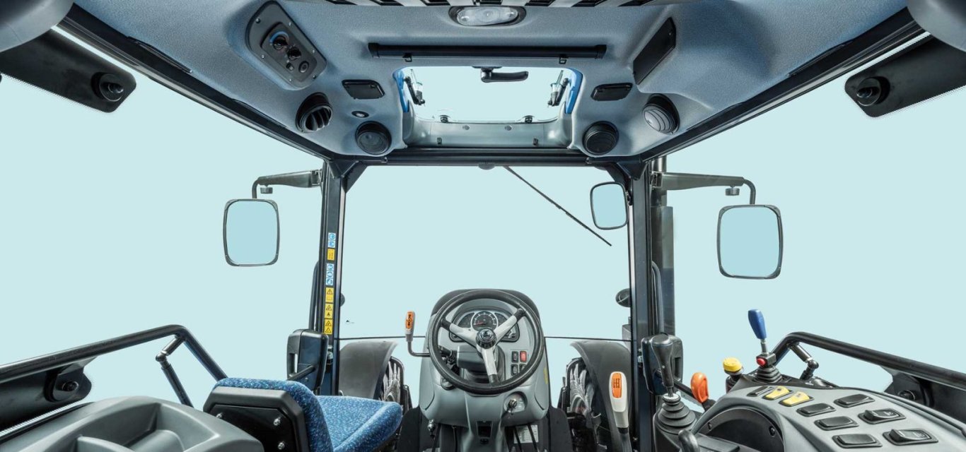 The platform version with two-post ROPS can be equipped with a sun canopy. The four-post cab with opening roof hatch ensures perfect all-round visibility. Designed with comfort in mind, the cab interior offers an air suspension seat, a tilting and telescopic steering wheel, ergonomic easy-to-use controls, and air conditioning. Up to 12 halogen work lights make night work easier. |