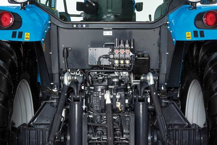 The closed-centre hydraulic system with variable-displacement pump supplies 110 l/min to the hydraulic functions and 38 l/min to the steering system. The Landpower features up to five mechanical remote valves and an electronic rear hitch with a maximum lift capacity of 8400 kg. The rear PTO offers two speeds: 540 and 1000 rpm. An electrohydraulically operated wet multidisc clutch enables smooth and modulated engagement of the PTO. |