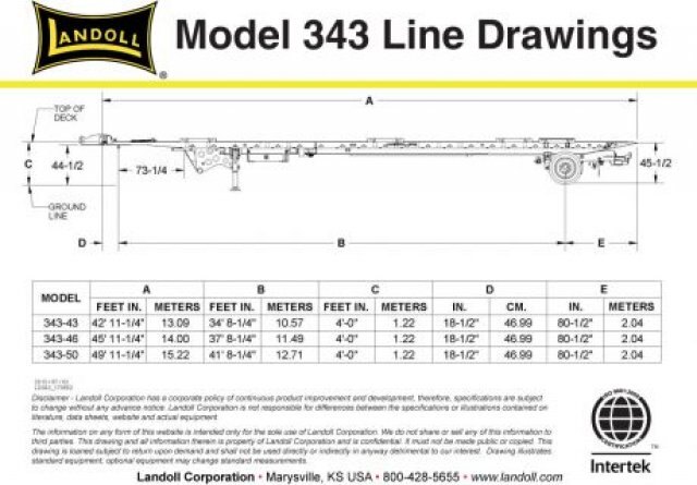 The Complete Container TransporterLandoll's all new Model 343 brings together decades of experience from working in the storage container industry. Today's demands to move standard ISO 20' and 40' boxes are easy. However, add the ISO and domestic high-cube along with the never-ending customized lengths of boxes to an application, and you need a trailer that can move them all. The Model 343 will do just that. The 343 is available in 43', 46', or 50' models. The 43' gives the operator the greatest maneuverability while handling up to a 45' high cube. If you are needing to handle 48' boxes, choose the 46' model. If you have domestic 53' high cube boxes in your fleet, then choose the 343-50. Match the length with the containers you are moving. |