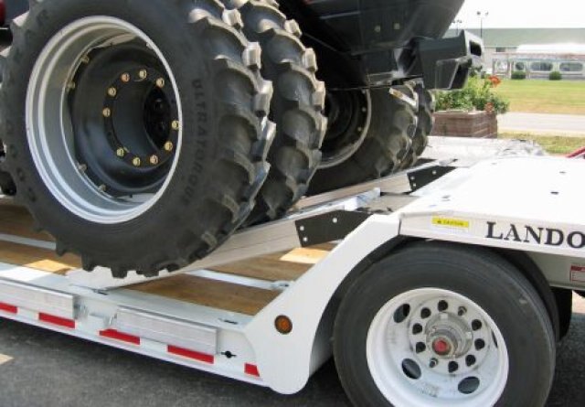 The 800 frame design features a flat deck with a loaded height of 17” off the ground. Coupled with a low tare weight, The 825 can haul the latest combines, tillage, haying equipment and planters with up to 32' of useable deck space.