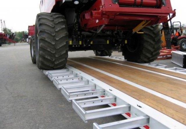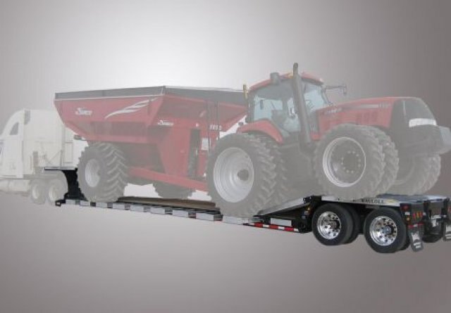 800 Series Ag Detachable Trailers are designed with an innovative four-beamframe and gooseneck give the operator versatility required to safely load and legally transport today’s heavy, wide and tall equipment.