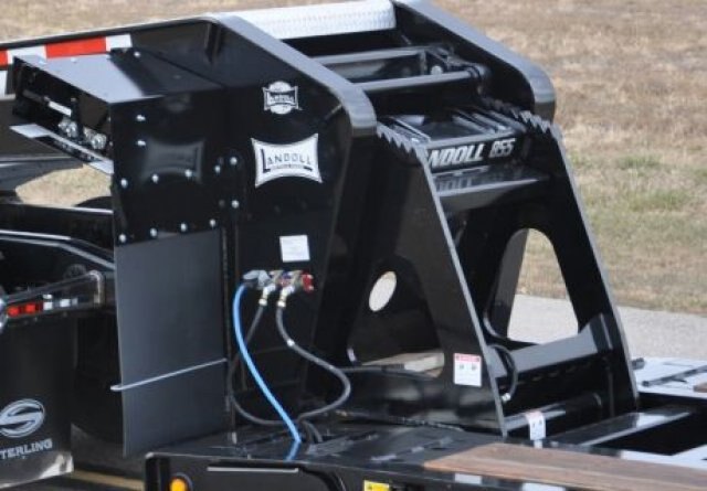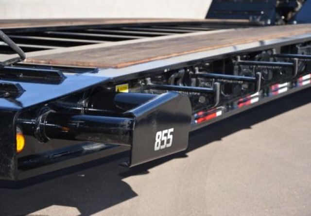 versatility plus many standard featuresThe Landoll 800 Series’ versatility originates in its primary standard features. The new innovative 4-beam frame features a flat deck with a loaded height of 19 1/2". The 855C is availble as a 3-axle trailer or as a 3-axle with optional flip 4th-axle. The 855C has a concentraded load capacity of 110,000 lbs. within 12'. |