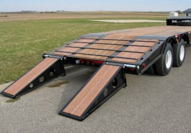 The Model 135 is a fixed gooseneck non-hydraulic beavertail 35-ton capacity trailer for the person that doesn't need or want hydraulics running from their truck. The rugged four-beam design of the 135 can haul construction equipment without the need for a hydraulic hookup, thus making the trailer of a lighter overall weight.