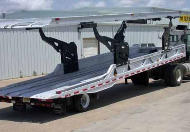 4 or 5 Car Trailer for Salvage VehiclesThe Landoll 334/336 car trailer is ideal for moving a large volume of vehicles, decreasing time and manpower, thus increasing efficiency and return on investment. The Lower Deck features a dump angle of 18° and an Upper Deck angle of 28°. The durable and maneuverable trailer includes Rugged Guide Rails on the Lower and Upper Decks with an adjustable upper deck which allows for easy transition from trailer to overcab. Hydraulic controls are cordless and manual, with an adjustable 24” vertical travel. The trailer also features a Tilt Cylinder, and the major steel components are powder coated. |