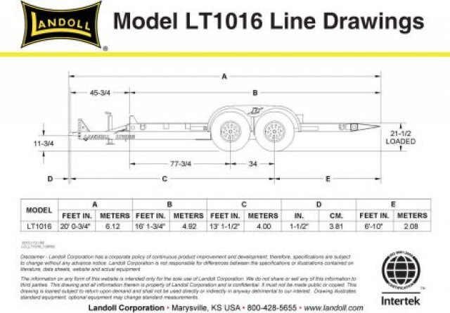 The LT1016 is a 10,000 lb. capacity 16' tilting tag trailer designed to haul light construction and landscaping equipment. The LT1016 is ideal for rental applications. A cushion cylinder tilts the deck for easy loading and unloading. GVWR of the LT1016 is 13,150 lbs. Two 6,000 lb. Torflex axles and 235/80R 16 Load Range E tires are standard. Numerous options are available to customize the trailer to your needs.