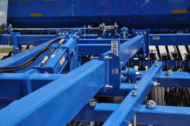 Regardless of size, many of the components are the same throughout the entire series.  Seed openers, seed meters, press wheels, drop tubes, seed boxes, and the list goes on.  The key element to this commonality is consistency from a manufacturing standpoint right down to the end user.  If you look closely at the Landoll 5000 Series Drill, there is a clear difference between it and the competition.  Laser cut and robotically welded components add up to better reliability.  Heavier gauge steel in the seed boxes and covers mean better longevity.  The pneumatic down pressure system completely eliminates spring breakage and inconsistent depth control.  Maintenance-free pivots in all critical locations mean long life and less down time.