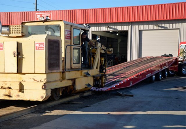 The railroad track option is ideal for safely loading and transporting today’s rail maintenance equipment.  The Landoll approach plate sits down onto the rail to create a solid base and smooth transition from rail to trailer without ramps or heavy drop-in-rails, allowing operators to load these machines within minutes.