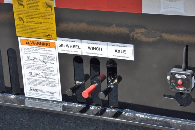 Computer designed fabricated steel beams incorporated with high tensile strength Jr. I-Beam crossmembers provide unsurpassed strength while offering substantial weight savings. The undercarriage roller bearings lower the deck into patented pockets fabricated from 100,000 PSI steel and align the axles. The trailer also features an e-chain flexible conduit to protect the hydraulic electrical lines while the undercarriage travels forward.